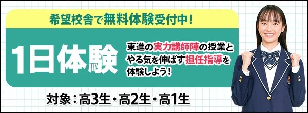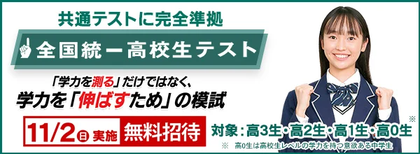 西那須野校ブログ 11/21(金)「未来発見講座」 11/3(月)「全国統一高校生テスト」 10/27(月)「西那須野校11月のお知らせ」 10/26(日)「全国統一中学生テスト」 10/10(金)「祝ノーベル賞受賞・坂口志文先(京都大学名誉教授)」 高2・高1生対象 高等学校対応コース キミの高校に対応! 難関大合格実績 日本一の東進が高校の成績アップに本気の挑戦! 詳細はこちら 全学年対象 「西那須野校」合格体験記 現役合格の声、ぞくぞく掲載中! 詳細はこちら 全学年対象 過去問データベース 難関国公立・私立大学など全185大学を最大27年分、無料で閲覧できます。 詳細はこちら